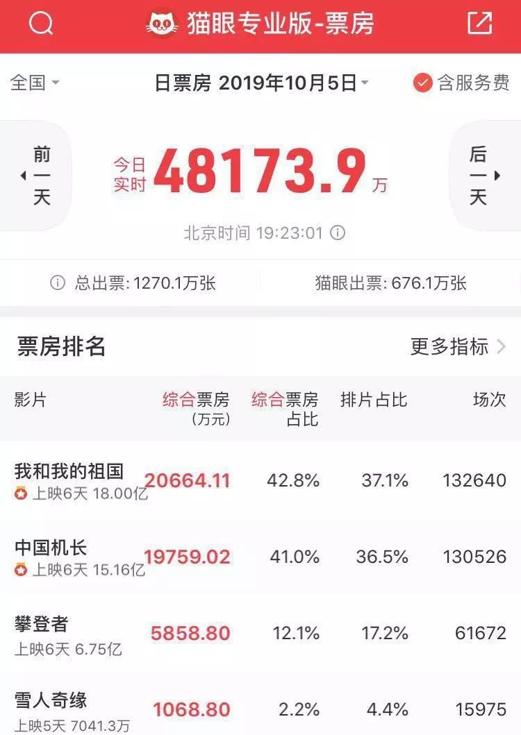 《我和我的祖国》票房破19亿登顶国庆档之冠,从献礼片到“献礼商业片”? |