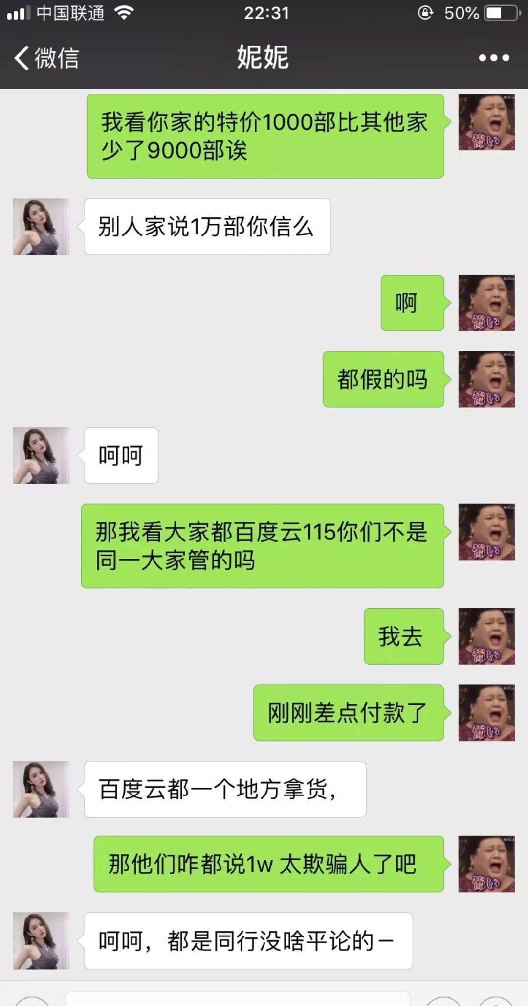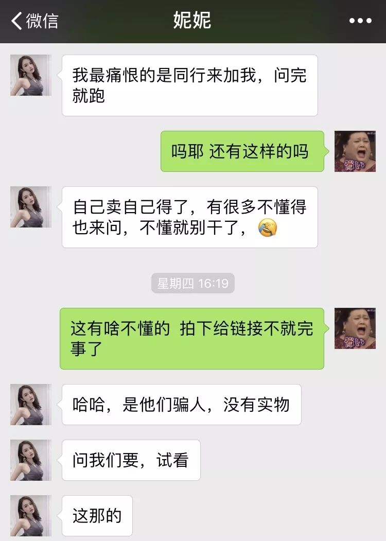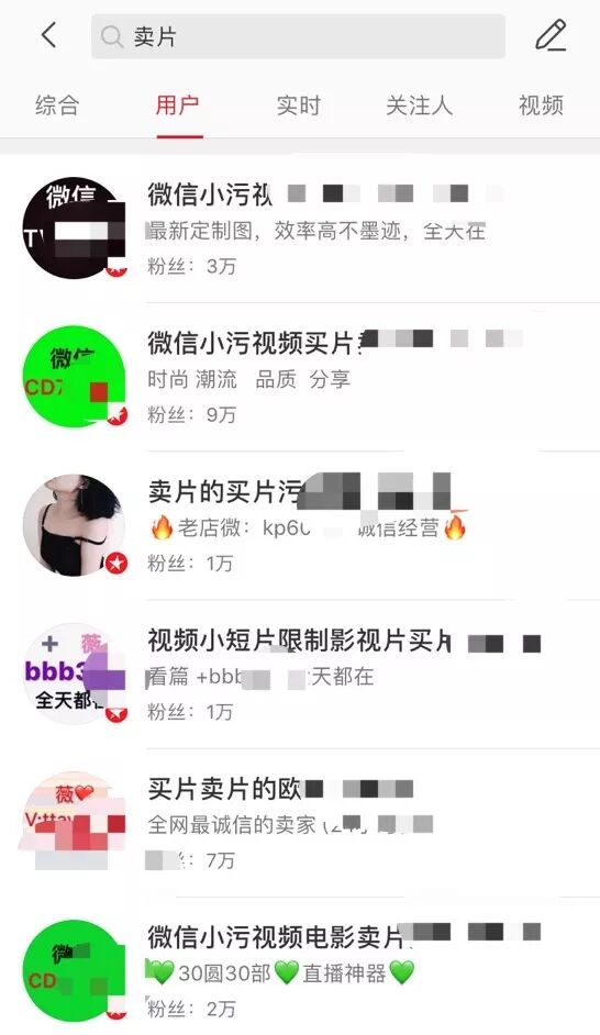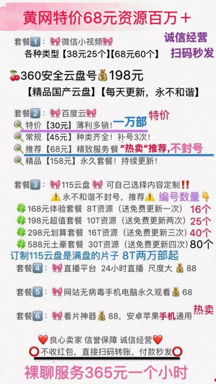 恭喜成为大V 因为那些遍布全网的卖片人通常以最快的速度、最夺人眼目的评论出现在微博热评上,引起你的注意,再等猎物上门。 微博评论里的卖片广告 .....院办有段时间也这么被盯上,拜托!院办,我一个这么阳光的妙龄少女,会看这种东西?我像是那样的人吗?越说越起劲,卖片的比韭菜还耐长,你拉黑1个,他们就有10个盯上你。 但实话说,要不是人民群众那点需求,谁还能撑出条产业链来。深受卖片广告困扰的(阳光妙龄女子)院办决定为了青少年健康成长,摸这趟浑水,从卖片的人下手探探这个卖片产业链! 家道中落,卖片界的魏璎珞也不行了 ▼ 要找到这群人非常简单,他们的各个上头带领的下线成员遍布微博贴吧微信,只要搜些不是敏感词汇又能表达意思的关键词,你就能找到他们。像毛-片、黄-片、A-片这种就不行了,得买片卖片这种直白的: 从他们的粉丝数大概能看得出哪家比较赚钱 挑个顺眼的,把你对片子欲望十足的好友申请发过去,这趟暗访就开始了。 这种时候一定要爱心泛滥 申请好友发过去之后,院办马上收到了一个提示: 满人????你们销量也太好了吧??? 院办没有加他的新号,又去微博找了个新的,没想到发过去之后又是: 满人!!你们行业饱和度这么高吗?此时此刻,虽然院办很看不起这样打法律擦边球的行业,但竟然也动了想代理的歪心思——这卖片的没准比写公众号的还赚。 当然这还没什么,加了新号后,院办对这行抓热点的执行力也略微心生敬佩(怎么回事),因为这个卖片号的名字叫: ❤ 魏 璎 珞 资 源 ❤ ▼ 魏姐客气说了你好之后就甩来两张图,废话不多说直接进正题。一张一目了然拍下发货购物品类图,从最便宜的38块到588块的土豪套餐,应有尽有: 而另一张就是付款赞赏码,识别之后你还能看到有多少人跟卖片的魏姐达成交易,这五百多次付款!! 卖片行业果然是个暴利的行业。 为了装作一副轻车熟路的样子,院办特意做了功课,那种人尽皆知的a-v女优肯定都是传播点,要买就有,没意思。院办去找了几个不太出名的小众情色电影,那种一说出名字你听不懂,还觉得你这个人有文化的“爱情电影”: 私の奴隷になりなさい (我的奴隶这种字眼院办还是能看懂的) 图片来自该电影官网截图 假意问资源类型之后,院办把这大串日语片名发给卖片的魏姐,眨眼时间没到,魏姐就爆了句粗口大骂: 可能是生意太好了,卖片的魏姐非常不把院办这种小顾客放心上,言语间都充斥着:没有,滚。 院办一惊:怎么回事?我说错了什么??这个卖片魏姐狂怼了我几句,最后竟然飙了《延禧攻略》的名台词: 什么,搞了半天原来这大妹在演戏!卖片就卖片,你演什么魏璎珞,还这么投入!! 但院办承认,卖片魏姐人设塑造非常成功,因为现在在院办脑海里,她说的每一句话自带着吴谨言的声音... 为了配合这位脾气暴躁的卖片魏璎珞,院办不得不跟她演两出戏。而这卖片的魏姐...真的戏精上身走火入魔... 卖片魏姐入戏太深了,一字一句都彰显着魏璎珞的暴躁脾气,院办不敢跟她多言,草草说了句“魏姐用膳小的886”,匆匆结束了和卖片人首战... 但没想到魏姐虽然脾气挺大,却非常热心,为了让院办找心目中的神片「私の奴隷になりなさい」,卖片魏姐给院办指了条明路: “找小鸟酱那些人问问,他们也许知道。” 这部片有没有也没什么所谓啦,但卖片魏姐一指点,院办突然有了新方向,小鸟酱?一些群众可能不知道是什么,这个组织在宅男圈子里可太热了(院办也是后来才知道的)。 而卖片行业的传播内容,也真正开始要辣院办的眼睛。 热门福利姬小鸟酱 ▼ 按照卖片魏姐的指示,院办去微博搜关键词,找到了一个人间接加上,为什么说间接呢?因为加上的那个人,其实是一个“中转站”,跟他打声招呼后,他把院办拉进一个群,识别群上发的二维码,才真正加到传说中的小鸟酱。 中转号,他朋友圈里发布大量“高价收购不用的微信号”信息 一秒通过后,这个ID为“baby吴XX”的人和卖片魏姐一样,发来了一张商品价目表。她是院办加了许多卖片人其中唯一一个敢公开朋友圈的人。 ▼ 卖片人的朋友圈截图, 一天发无数个禁断图片和小视频 .....而完全没有任何心理准备的院办,点开后.....呕,恶心,这特么也...这个朋友圈对玻璃心少女院办造成了不少伤害。反正不打码的图是没办法给你们看,你们就脑补一下几个人在粪池里野战的恶心感吧,呕。 经过互联网大兄弟和院办维基百科般的狗友的指点,院办才知道小鸟酱是个拍片卖片,对外号称写真工作室的涉黄组织。 这跟日系小清新风格风格不过是他们打擦边球的幌子 小鸟酱在宅男圈子里非常受欢迎,听说他们的资源在业内炒得非常高,高到什么程度呢?院办试着问了一下: 300! ?????魏姐那一万部片才30块啊30块!300块不得十万部啊,我的天。但小鸟酱这价格在部分黄-片资深用户看来,也无法理解。 好了,我知道看到这里的你一定迫不及待想看看小鸟酱到底是何方神圣,为了大家以后还能见到大院和院办,请轻点: << 滑动查看下一张图片 >> 了解了小鸟酱昂贵的市价后,院办觉得是时候找个正经卖片的,用最低的价格买最高价的资源。当然,是为了接下来的对这个灰色地带有更好的了解。以适时给他们致命的一锅端打击。 于是,我认识了那个扑所迷离的卖片妮妮。 诚信卖片,0.3元QQ机器人提货 ▼ 在茫茫(卖片)人海中,院办加上了这个ID为妮妮的卖片大妹儿。跟其他卖片