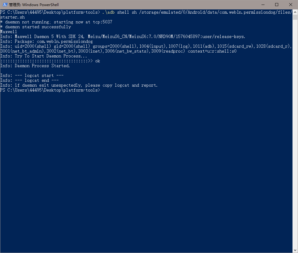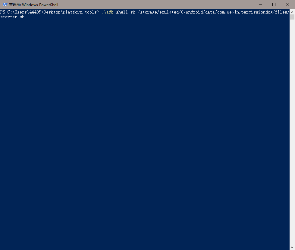 .adb shell sh /storage/emulated/0/Android/data/com.web1n.permissiondog/files/starter.sh