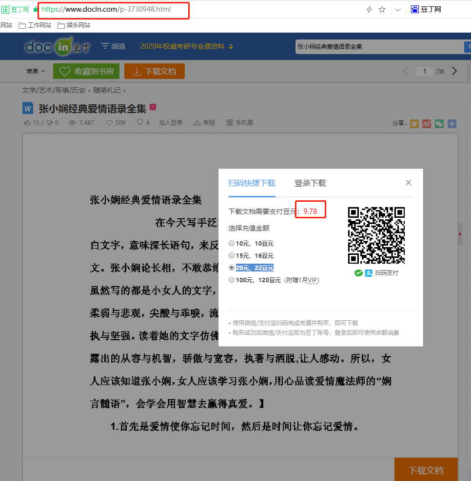 如果我们需要下载豆丁、Book118等平台的付费文档,可以用另外一款下载器,比如下面这个文档需要9.78豆,这里我们同样上面的网站复制链接。