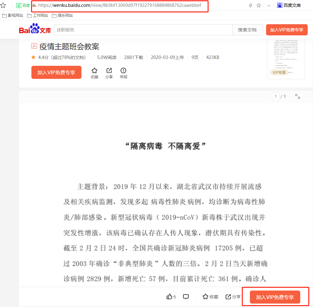 比如我们这里需要下载一篇带有VIP标识的文档,这里直接下载的话会提示你开通会员,这里我们直接复制上面的链接然后回到软件粘贴。