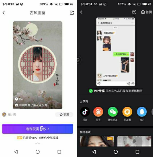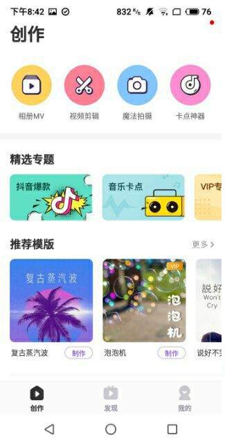 朋友圈发啥视频吸引眼球呢,在这几秒成为视频剪辑达人,快速选择模板制作炫酷视频,分享给相亲相爱一家人群里,此版本已优化免登陆即会员