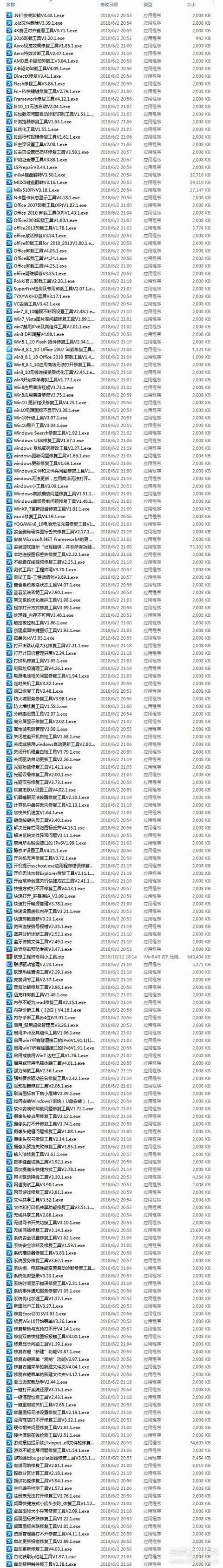 这是一整套电脑修复工具,已经在云盘吃灰很多年了,今天刚好在 52pojie 发现有人重新推荐了它,发现云盘吃灰多年的它还是很好用,所以给大家发出来~ 1 204 个联想电脑修复工具 它的名字虽然是联想电脑修复工具,但是工具不限制品牌,不管是联想还是戴尔或者其他,笔记本还是台式机,都可以用。 工具都是针对性比较强的,都是直接针对某一个问题,我们遇到问题的时候可以直接去里面找,我试用了一些,还是可以用的,比如清理.old 文件工具等,但是这套工具确实有点老了,可能因为系统更新,一些解决问题的软件并不能用,大家不要过度依赖。 工具详细截图(高能): 2 读完了 下载地址: 评论区