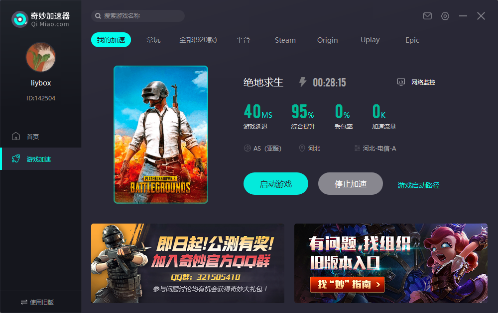 加速器的用户体验还是非常好的,简单的加速界面,没有其他多余组件: