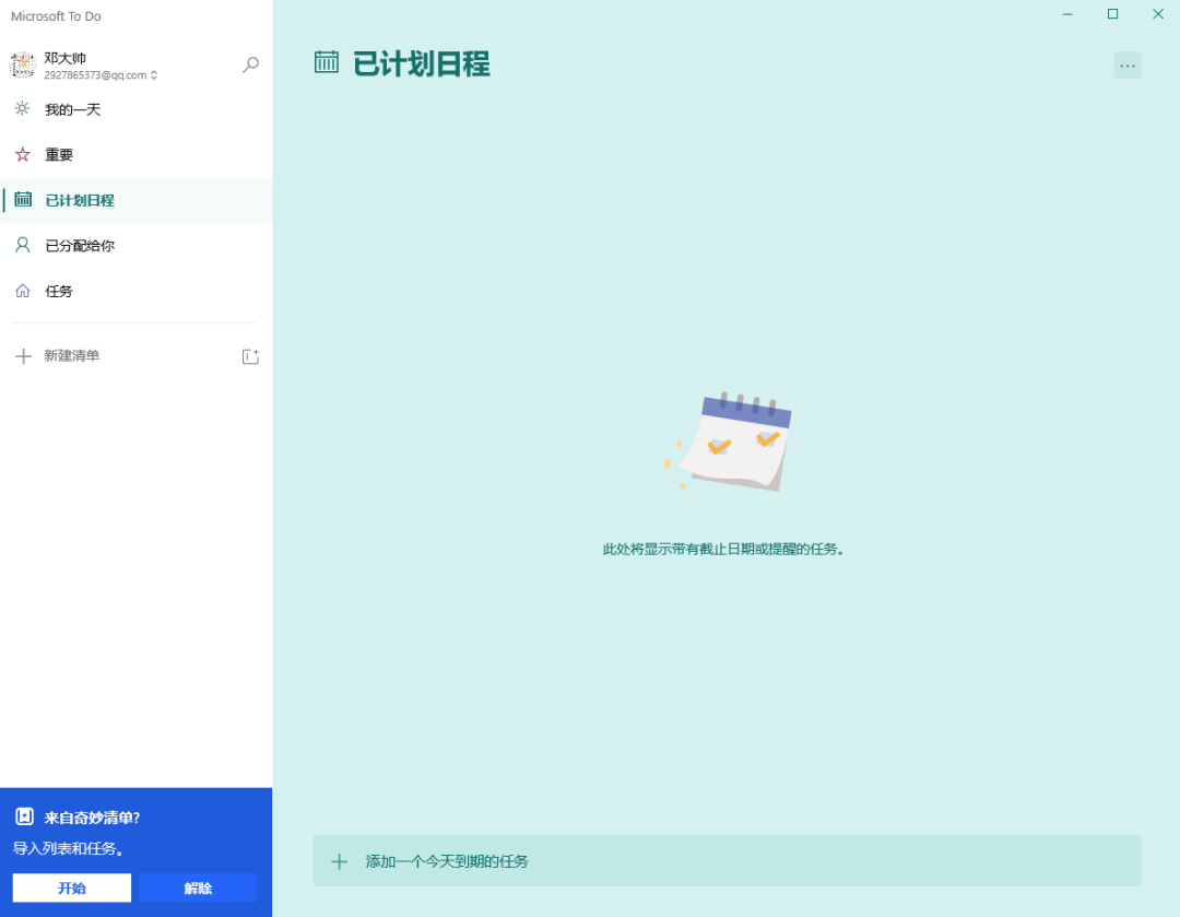 Microsoft To-Do按照我的一天、重要事项和已计划日程三个方面,来对个人的待办事项进行分类管理。