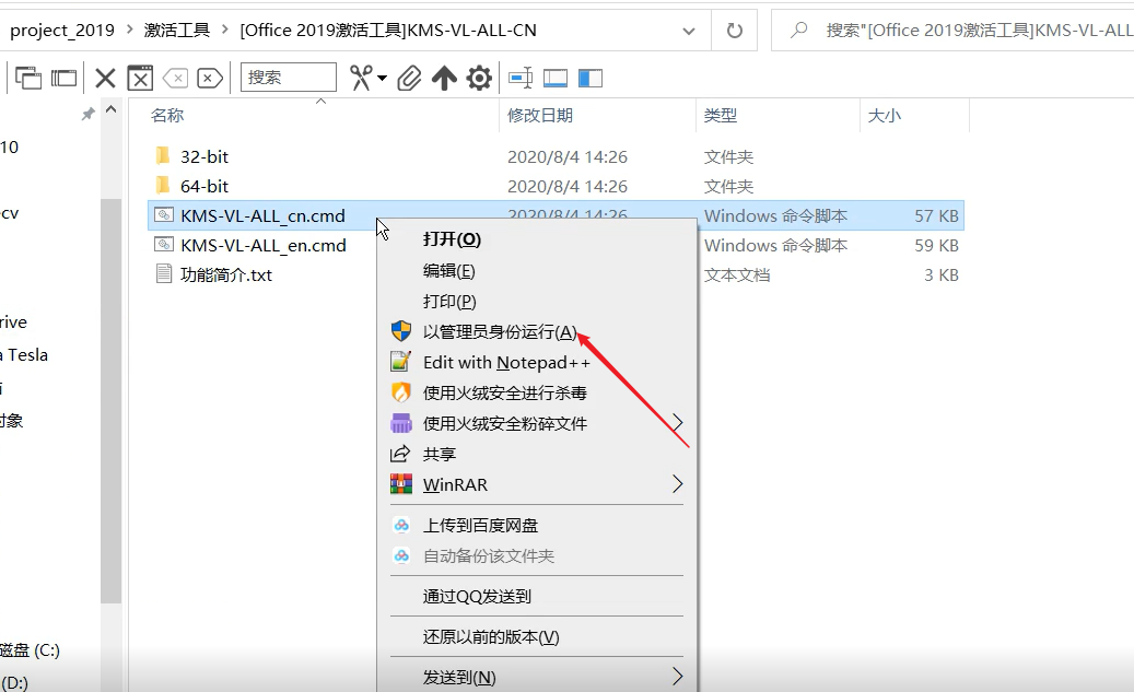 14.选中【KMS-VL-ALL_cn.cmd】-【右键】-【以管理员身份运行】