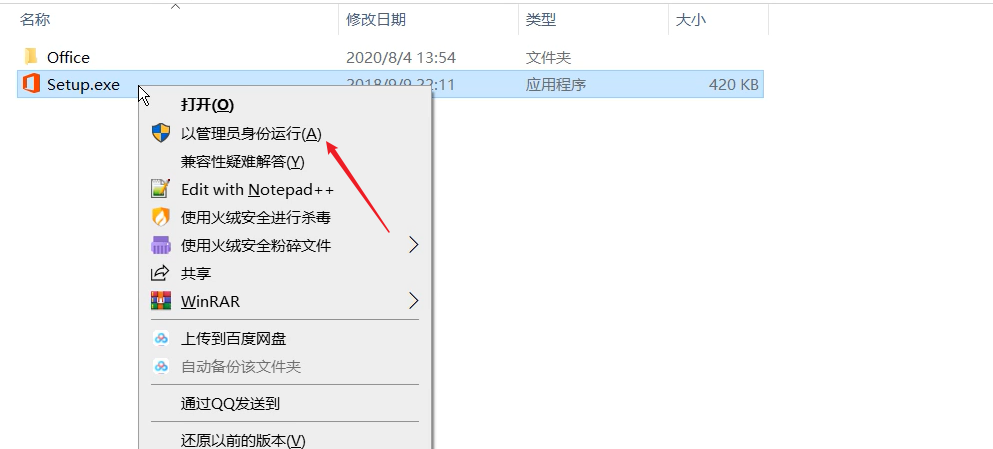 2.选中【setup.exe】-【右键】-【以管理员身份运行】