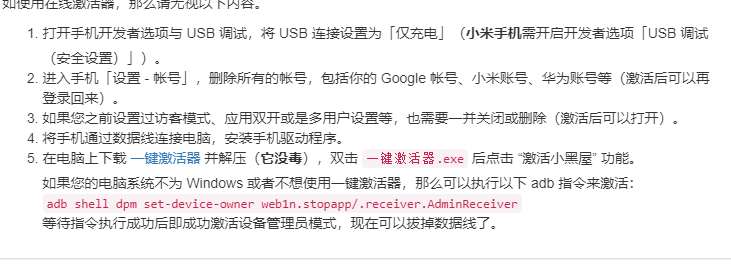 大家看情况激活吧,我自己手机不经常重启,也不想退出账号这么麻烦,所以就选择了普通ADB激活