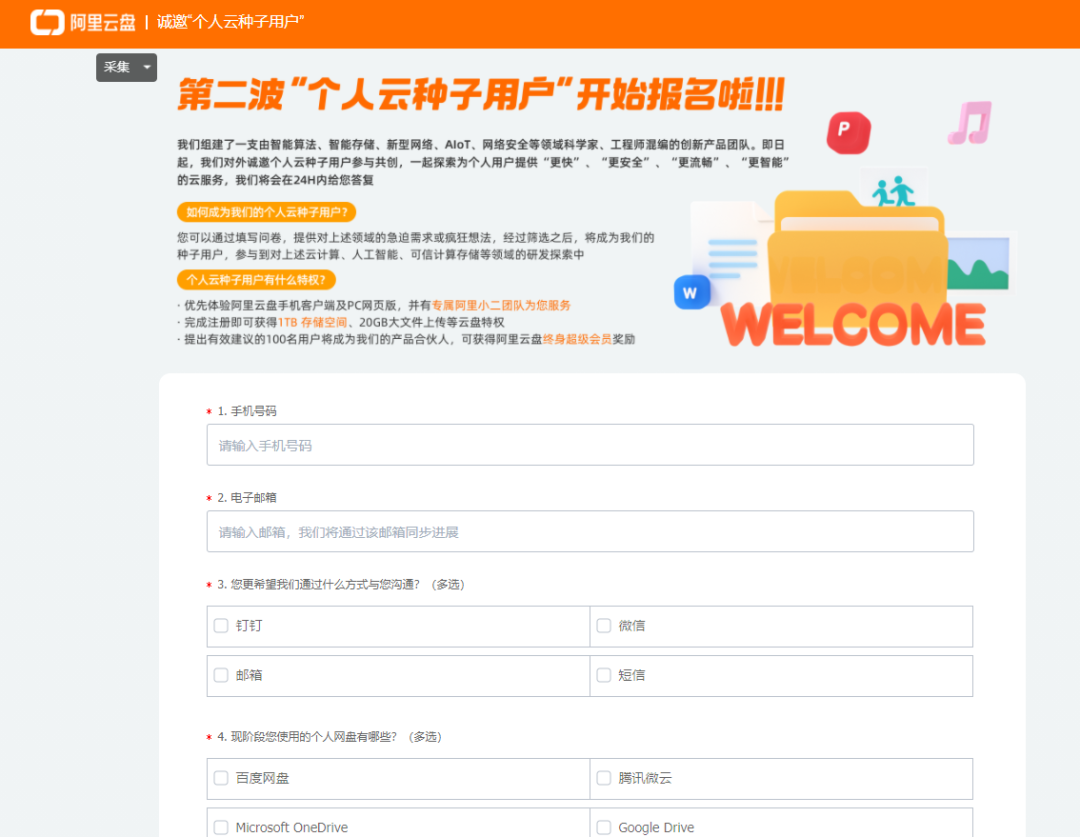 还可以申请成为个人云种子用户,在网页:https://survey.aliyun.com/apps/zhiliao/jqBinngVQ