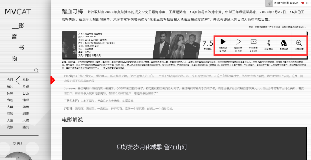 准确的说影猫并不是一个影视网站,他可能更多的是影视文化和休闲娱乐,在我们不知道该看点什么时候,打开它,走进一个分类便可以找到一个心灵归宿。