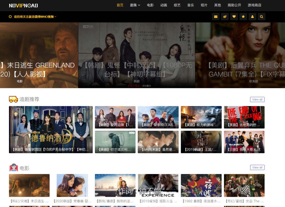 No 影视是一个在线影视网站,它最大的特点是质量,网站的质量非常高,没有侵权影视,所以国内的很多大片没法看,但是它收录了各大字幕组的精品影片,各种美剧,英剧,韩剧等等,非常适合看外剧。