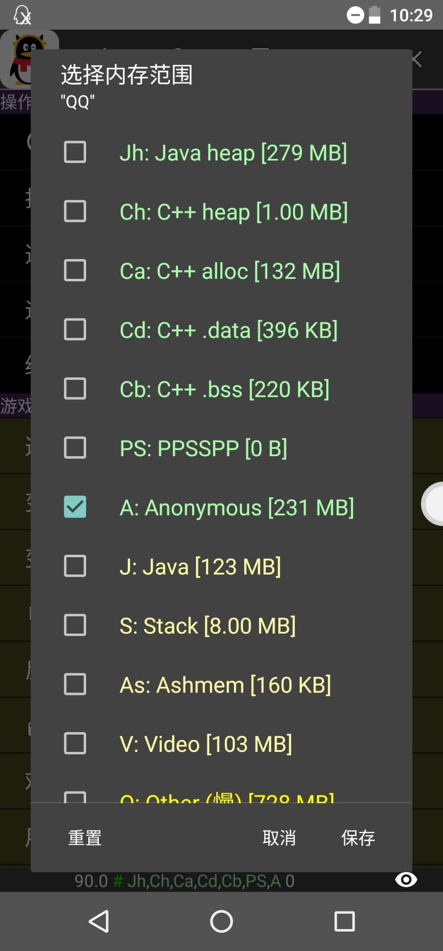 2.选择好了后设置GG修改器为内存范围为A