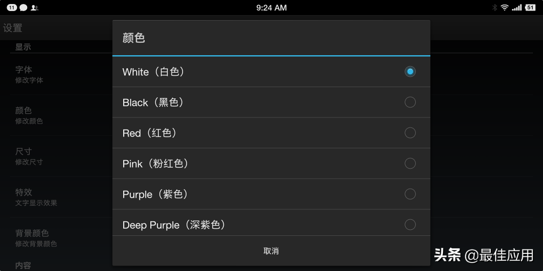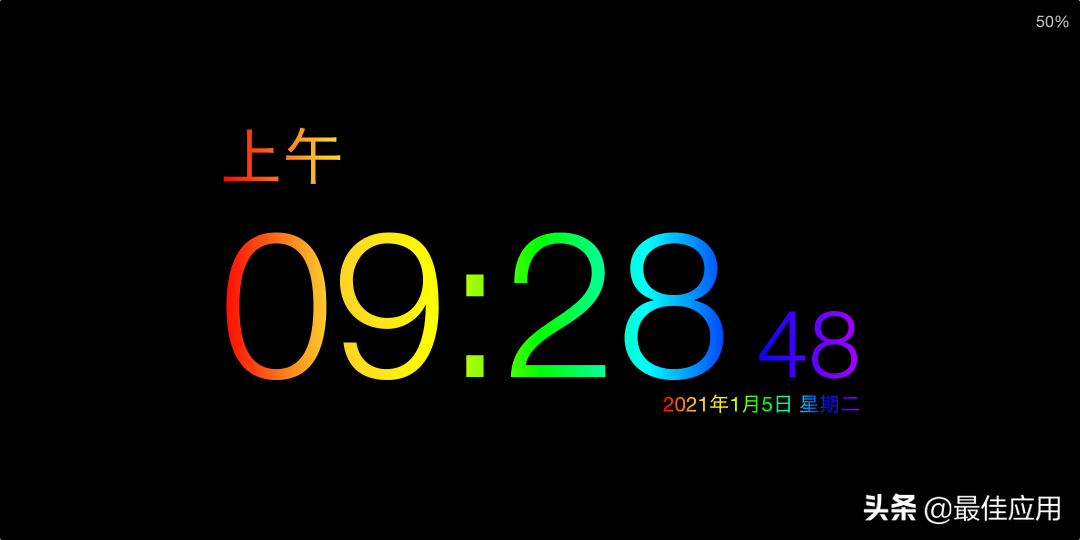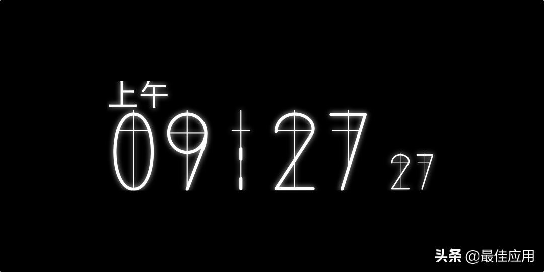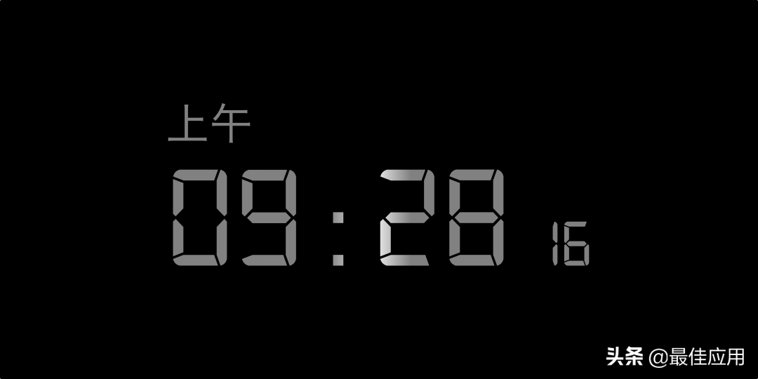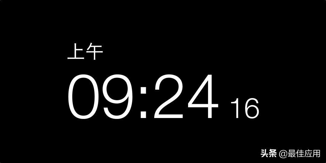 黑色的背景搭配白色的字体,直接将手机就变成了一款小时钟,挡在书桌上、办公桌上、床头上,瞬间发挥了它的价值。
