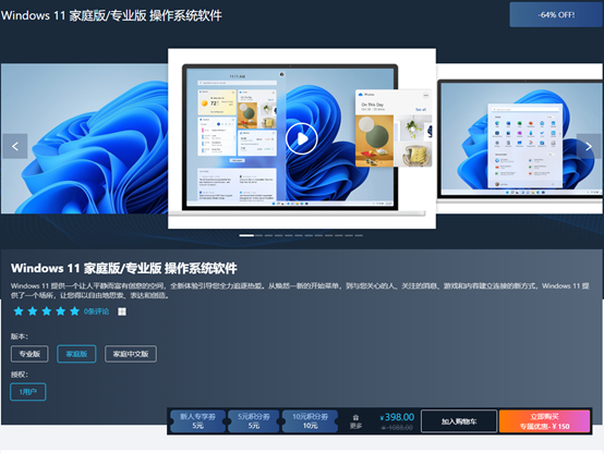 即可立减150元,家庭版优惠后248,专业版348