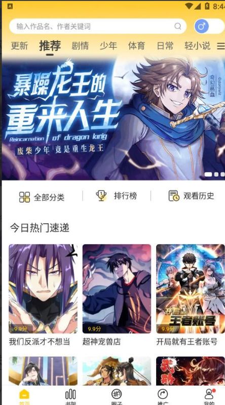 漫天星app是一款由河南喝了吗网络科技有限公司开发的漫画大全阅读软件,软件内收录了非常丰富全面的漫画资源,实时更新最新章节,用户可以通过本软件线上免费观看喜欢的漫画,高清无水印。