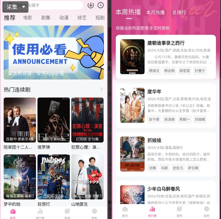 一款非常奈斯的掌上追剧神器,专为用户提供海量的免费影视资源,每日及时更新各类影视剧集与电影,确保内容的时效性与丰富性,内置强大的播放引擎,致力于为用户带来极致流畅的播放体验