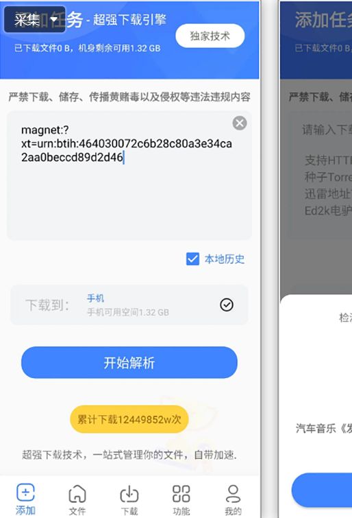 一款功能强大的资源下载神器,可以帮助用户快速下载所需要的任何资源,支持http直连、https直连、种子Torrent、磁力链Magnet、迅雷Thunder、ed2k电驴、FTP等多种协议下载,无视冷门资源,不限速下载。