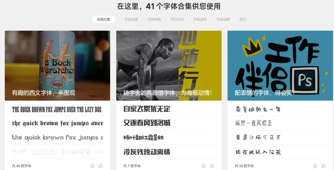 它有一个特点就是可以看这款字体的应用场景,可以给你更多的灵感。官方链接:http://www.hellofont.cn/home 它的板块有发现字体,字体合集,字体案例,字说字话。